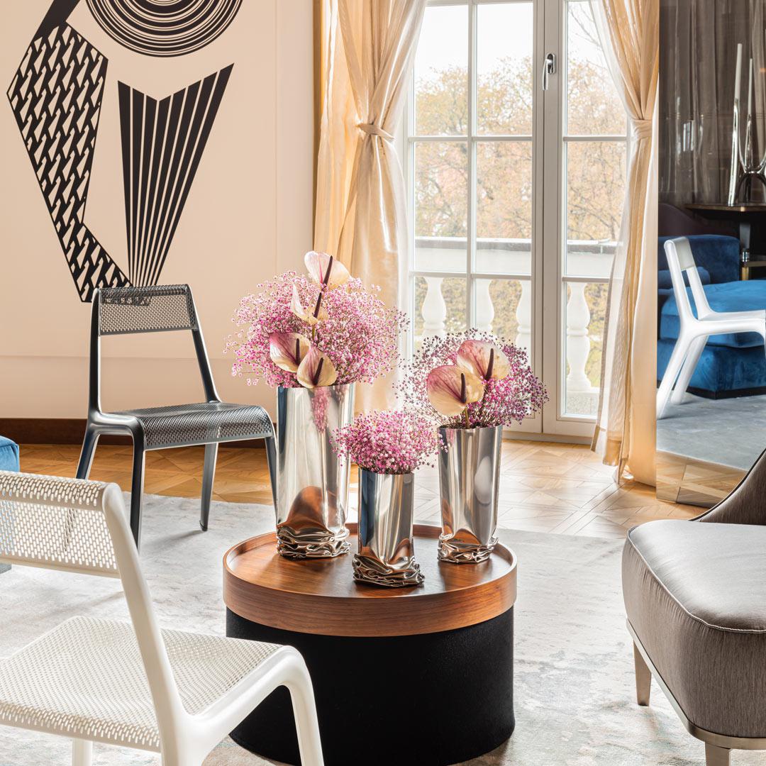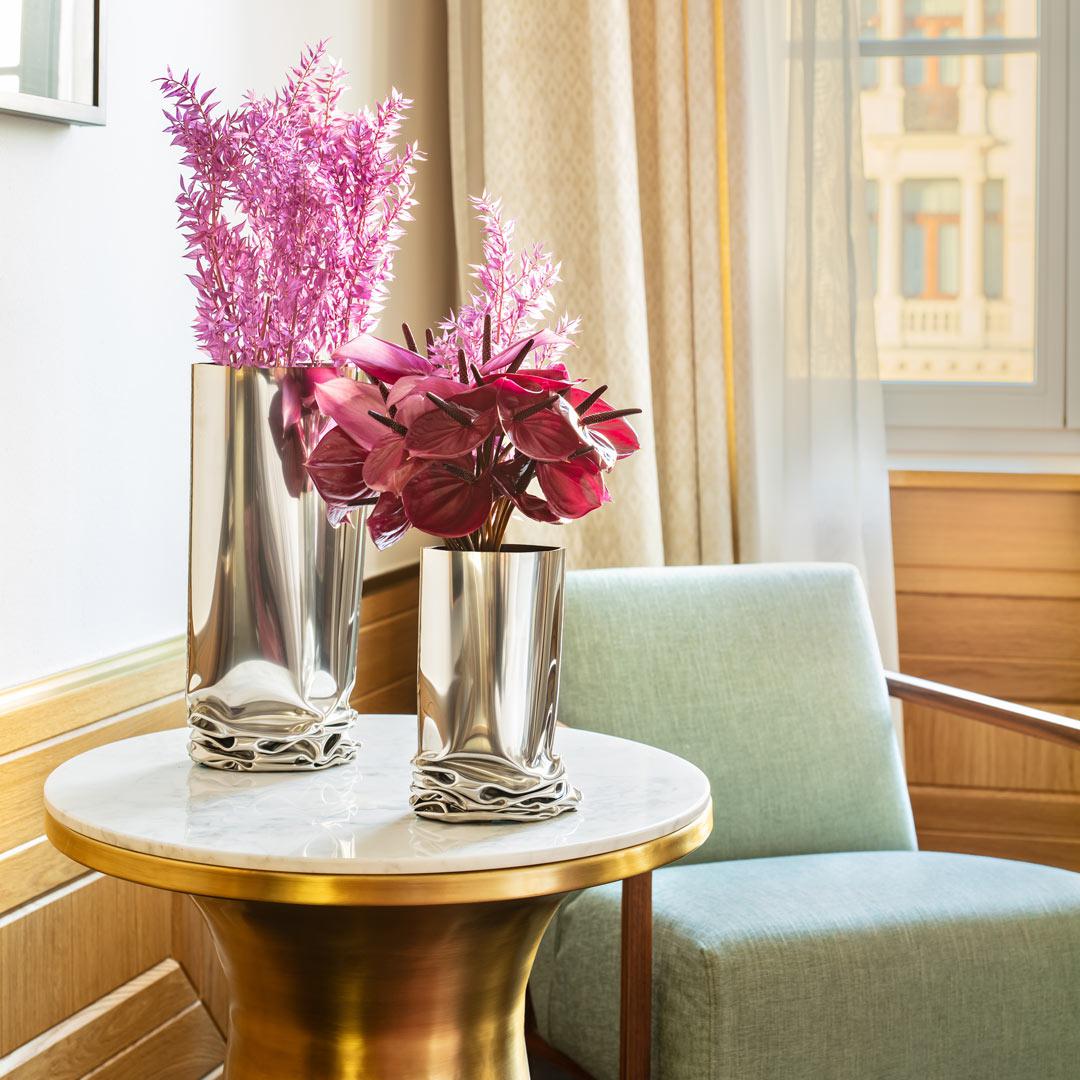 The beautiful Crash Vase by Zieta is a unique, innovative design that offers you a canvas to unleash your creative talent and let your flowers stand in all their glory. The powerful steel metal vase base appears to be crushed, but this is actually a deliberate design choice.