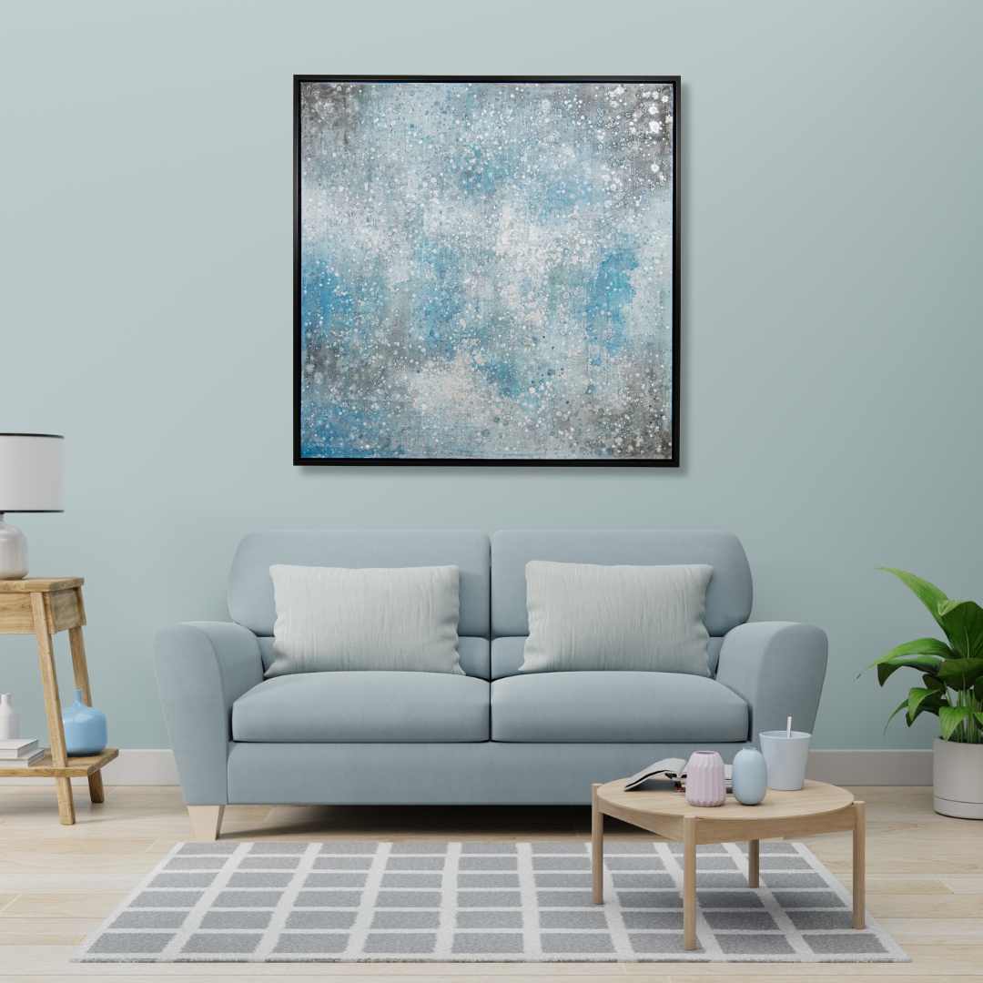 Introducing Carlos Canvas by RV Astley, a stunning abstract painting for your home! Boasting a seriously cool combination of blue, grey and silver tones, this canvas painting will bring life and energy to any living space. The black frame creates a dramatic backdrop, making this painting perfect even for plain walls.