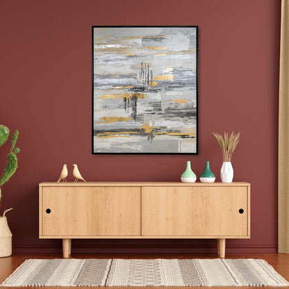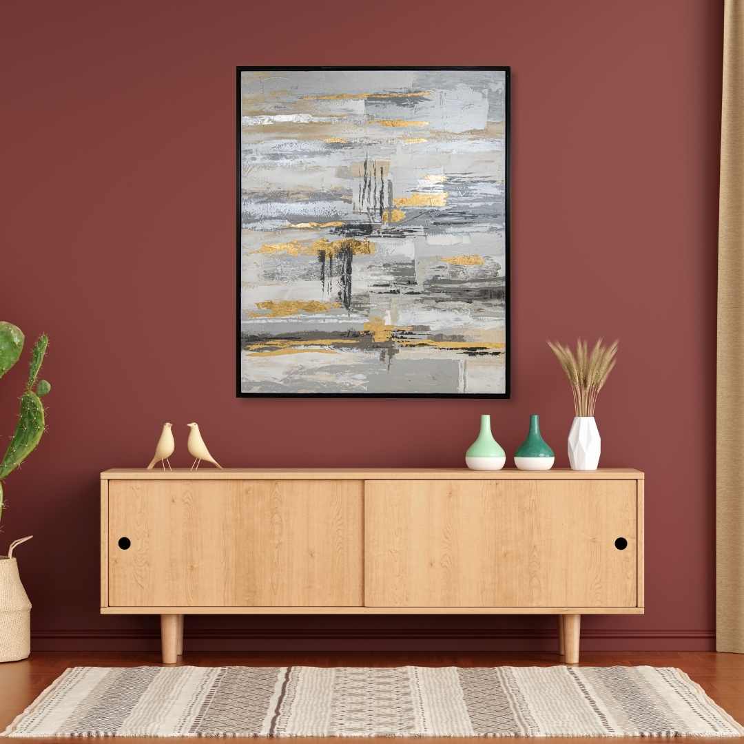 If you’re looking for a unique piece of art that will brighten up any room, Congra Canvas by RV Astley is the perfect choice! This stunning painting features an abstract design with black, grey, gold and sand details that come together to create something altogether more magical. Boasting a classic black frame, this painting is equally suitable for either your home or business decoration thanks to its innovative style and calming aesthetic.