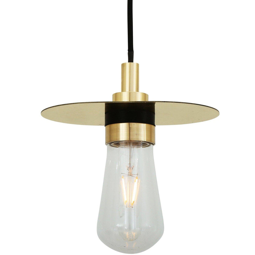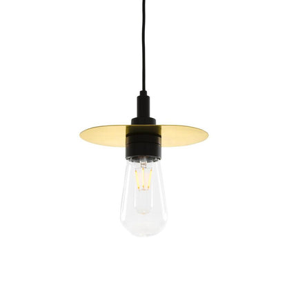 Available in 100cm and 200cm cable length and three finishes; polished brass, powder coated matte black and powder coated white all with a brass shade.