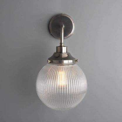 If you're looking for a bathroom light with vintage appeal, the Stanley Holophane wall light by Mullan Lighting is a perfect choice. The classic design features an antique silver frame and a refractive glass shade that casts a soft, inviting glow.
