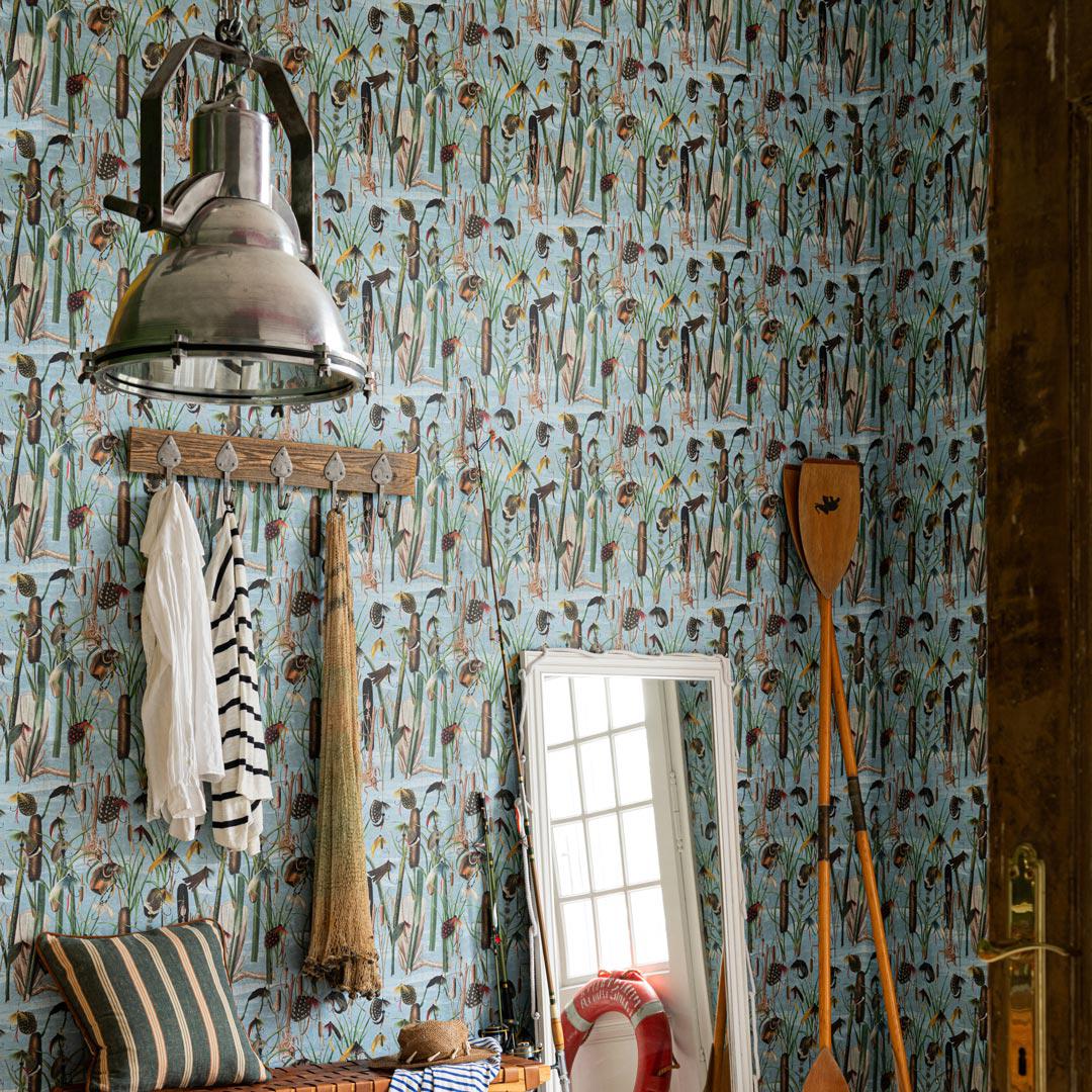 Designed as part of The Wetlands collection, the Fishing Flies Wallpaper brings the essence of the Delta's waters into your space. Its intricate patterns and rich colours capture the diversity of fish and other water creatures, creating an ambience of natural elegance and lively sophistication.