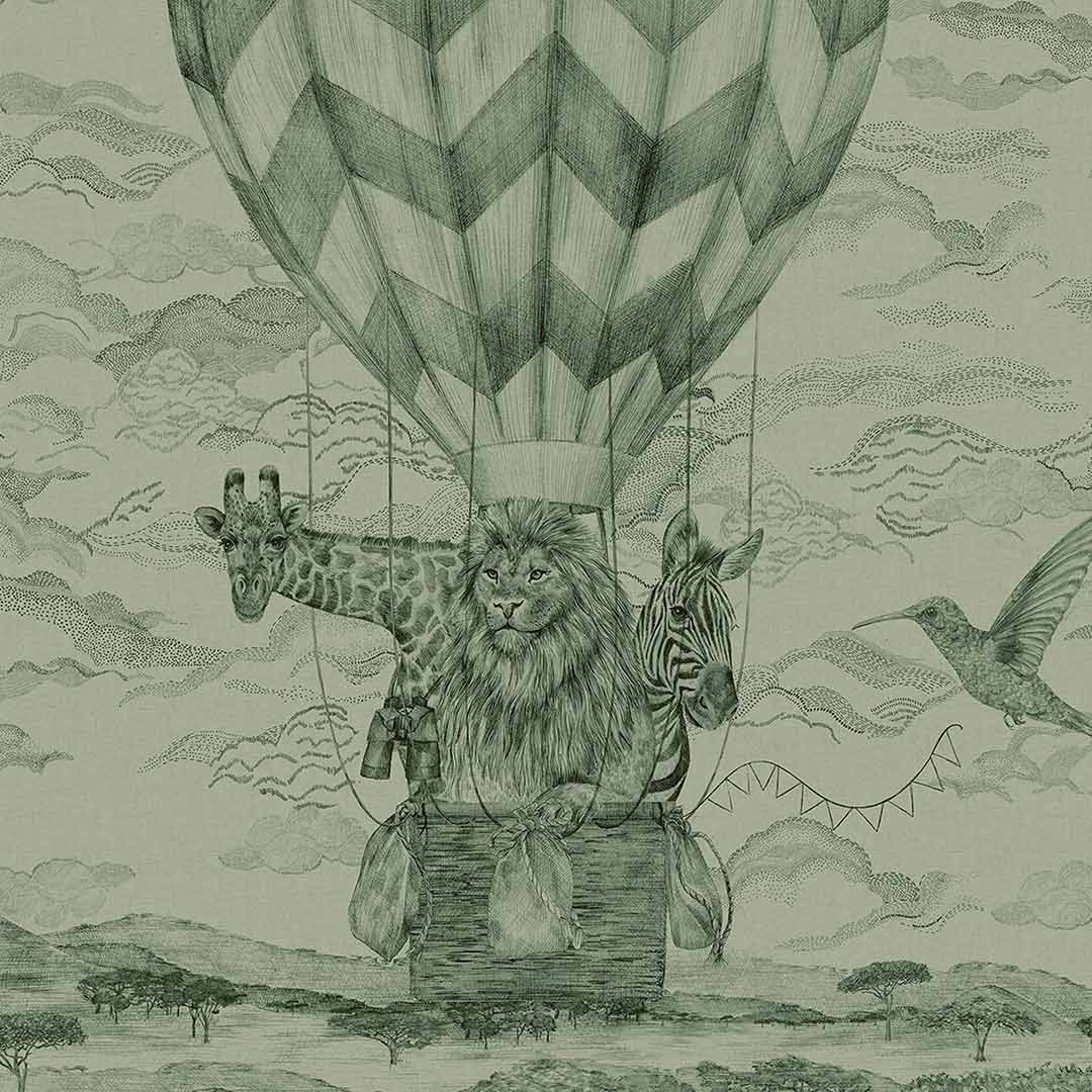 Welcome to the Lyons Den Wallpaper - Sage, a whimsical and vibrant addition to any child's bedroom. Step into a world of adventure and imagination with this unique wallpaper featuring a playful safari theme. Hand-painted with intricate details, this wallpaper showcases a variety of exotic animals like lions, giraffes, and elephants roaming among lush foliage.