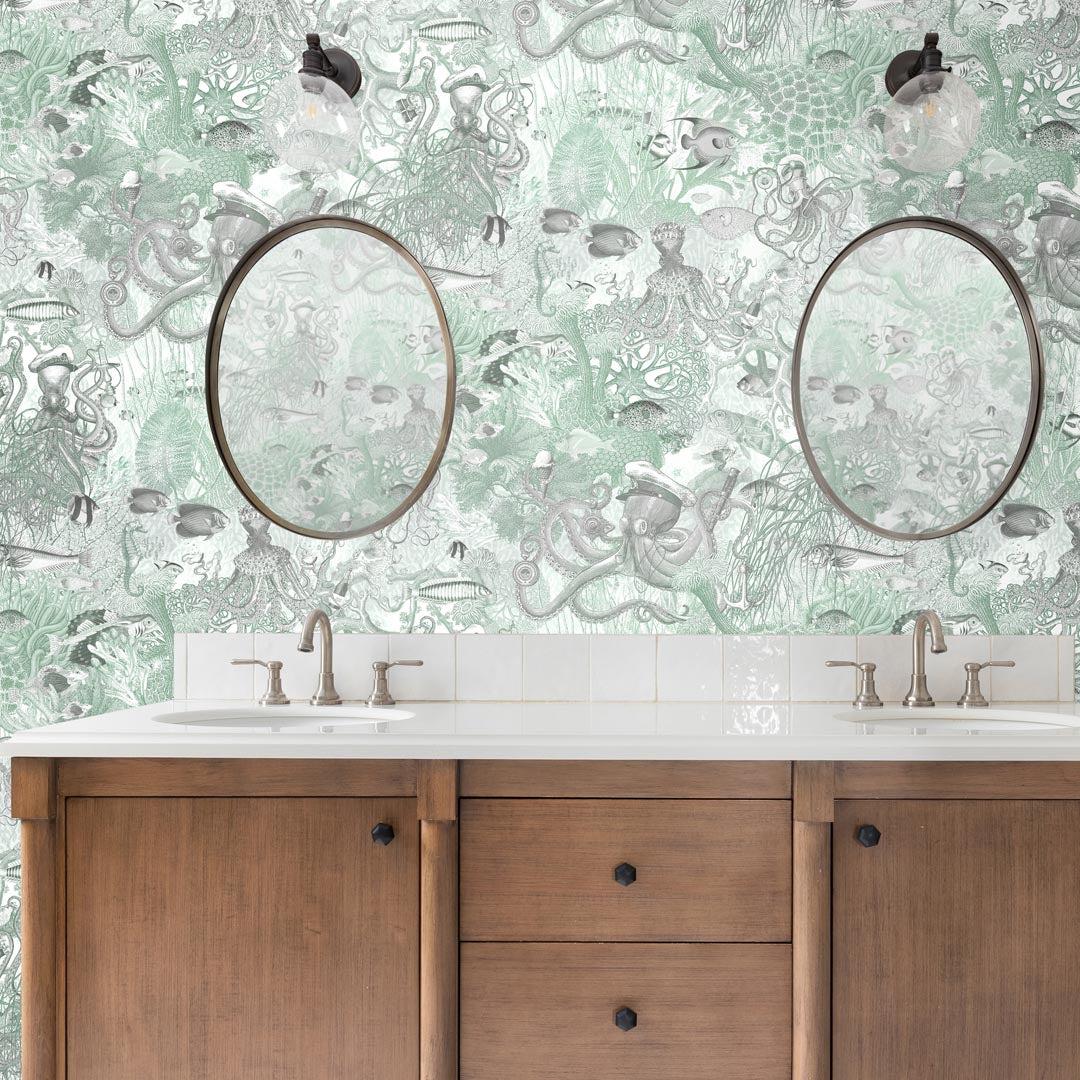 Welcome to the depths of your dreams with Octopus Wallpaper in Sea Spray from Brand McKenzie. Immerse yourself in a world where the ocean is your playground and the vibrant sea life dances all around you.