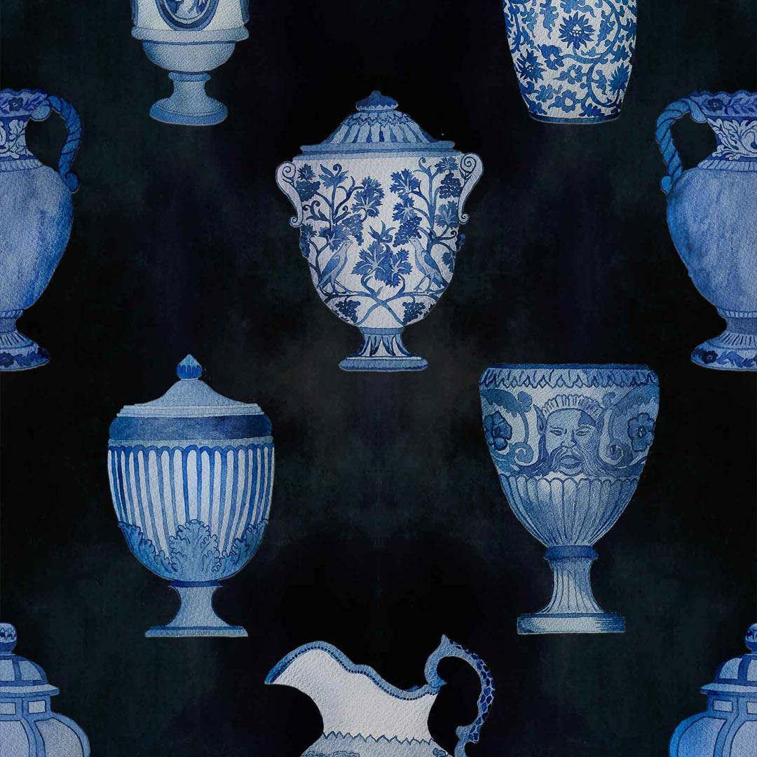 Enliven your home decor and bring a touch of old-world charm to your walls with Porcelaine Wallpaper by Coordonne. This beautiful wallpaper is adorned with intricate and captivating ornaments, showcasing a collection of elegant vases and pottery, perfect for adding a touch of traditional artistry to any space.