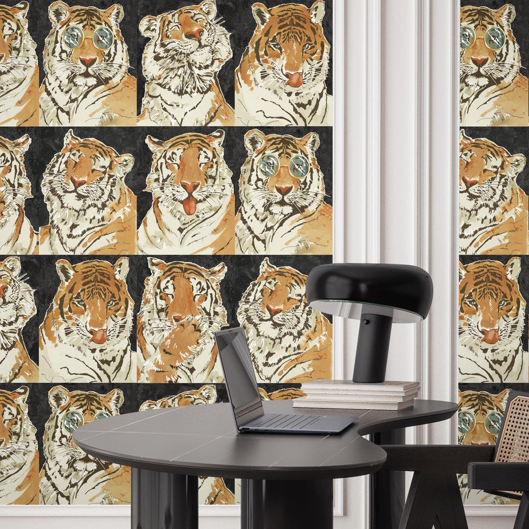 Inspired by the iconic pop art style of Andy Warhol, this animal wallpaper puts a fierce and playful spin on the classic Warhol aesthetic. In place of human faces, your walls will now feature the striking and majestic visage of a tiger, portrayed in four distinct and expressive gestures. Each tiger face is a statement of personality and attitude, showcasing the animal in a series of playful moods that will add life and character to your space.