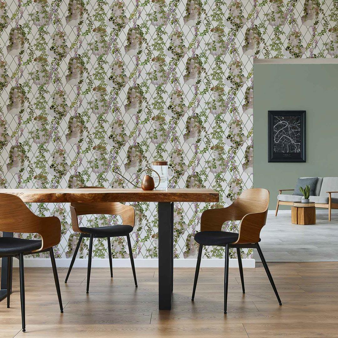 With its modern design, Statues Wallpaper is sure to add interest and charm to any room. Whether used as a feature wall or throughout an entire room, this trendy wallpaper will bring fun to your space. The carefully crafted details of the statues and vines add a touch of whimsy and imagination, making it the perfect addition to any contemporary or traditional home.