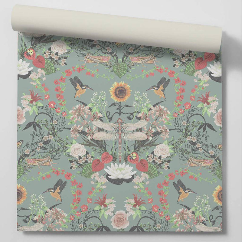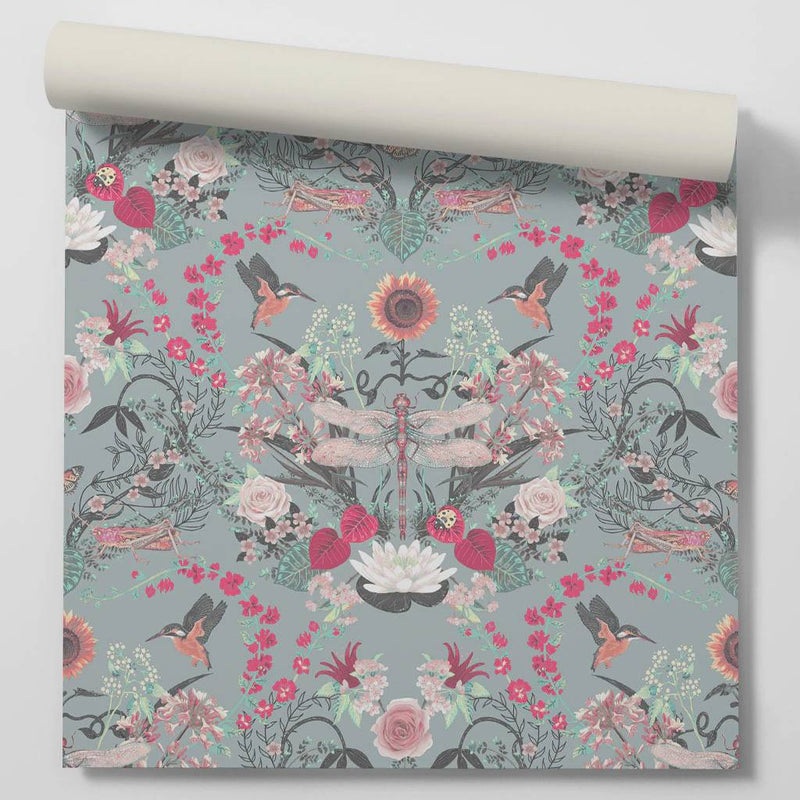 Garden Treasures Wallpaper - Powder Blue - Becca Who