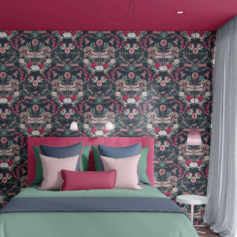 Becca Who is a British Designer based in Lancashire, UK, whose dramatic and opulent style is loved by those who enjoy highly decorative, original design. Hand drawn details and painterly strokes, a passion for rich colour palettes and touches of the unexpected, effect a visual alchemy on luxurious textiles.