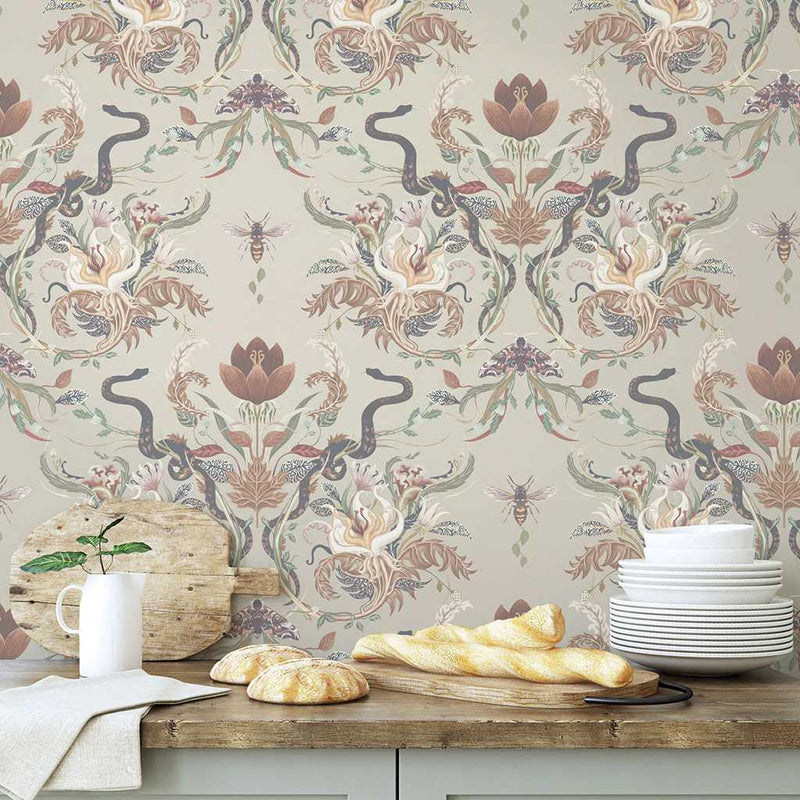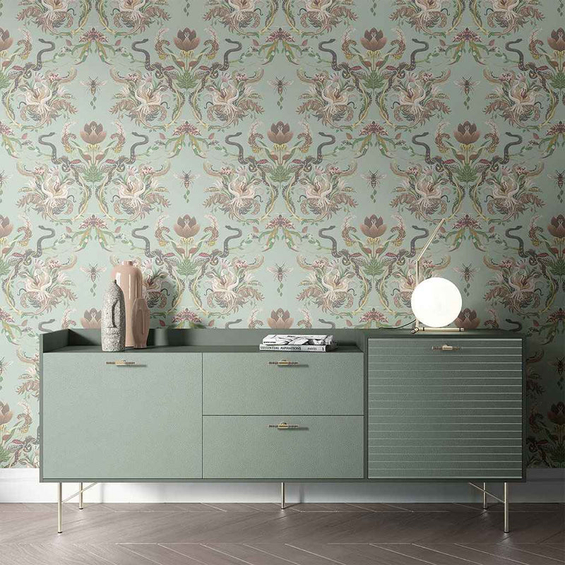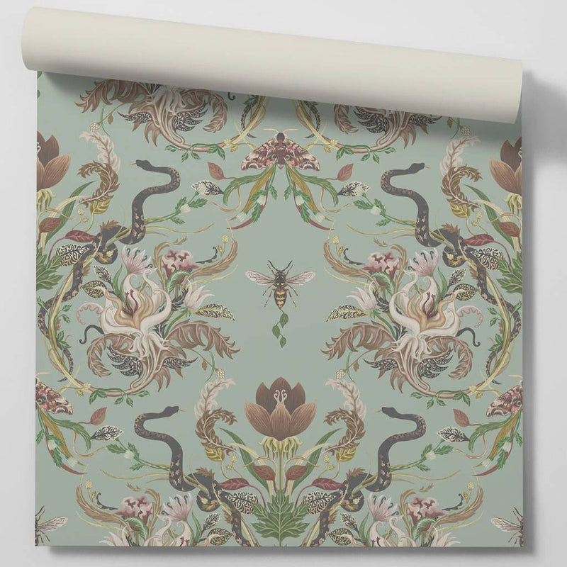 Serpentwined Wallpaper - Pale Moss - Becca Who