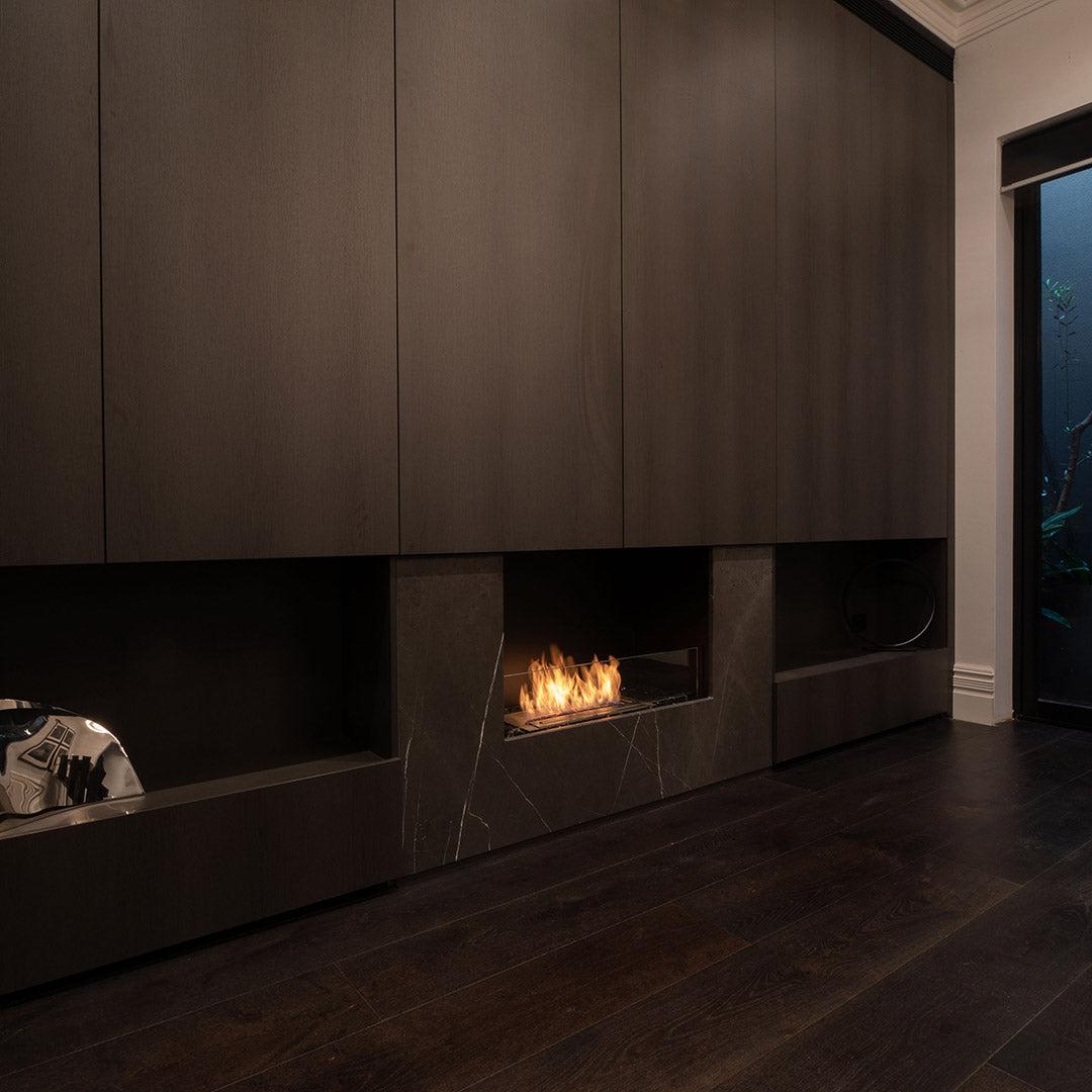 Flex Single Side Fireplace Insert is designed for use as a single room application, to create a stunning feature wall, replace an existing fireplace or sit cutely within cabinetry. Add a glow to your living room, dining area or commercial space, with the clean lines of the flame drawing your attention in. With a built in glass protective screen fitting flush behind the frame for extra style, this fireplace is perfect for those autumn and winter nights.