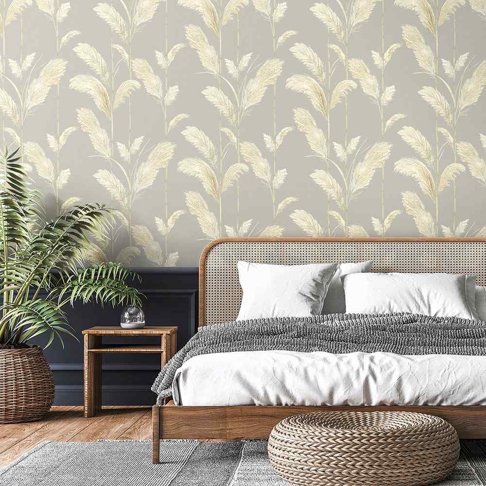 Soft muted tones show the beauty of Pampas grass, a perennial plant that can reach 4 metres in height. The long sharped-edged leaves fold at the midrib and form a dense tussock. Pampas is perfect for introducing a sense of warmth and texture into your interior scheme and this soft grey colourway works beautifully in a subtle neutral interior design.