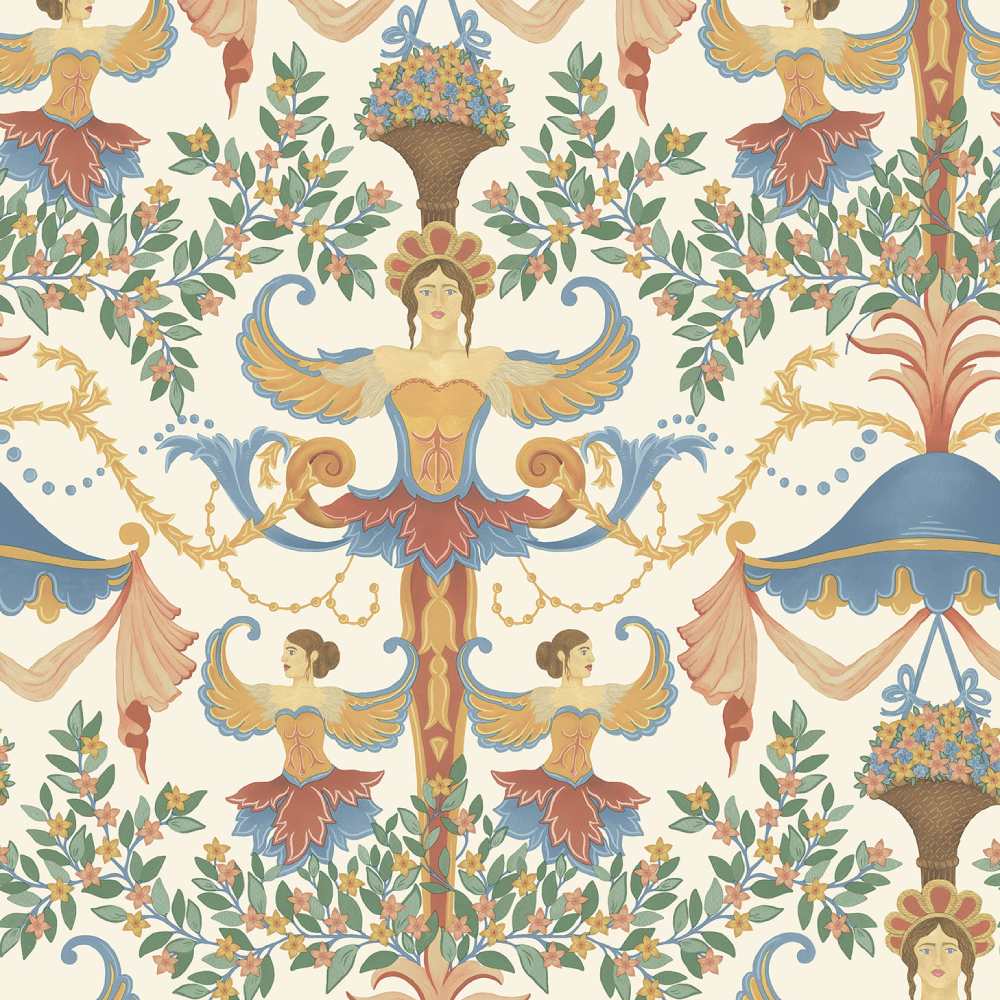 Cole & Son’s designers took inspiration for Chamber Angels from the unique, carousel style structure found on the ceiling of The Presence Chamber, which forms part of the King’s State Apartments at Kensington Palace. Originally designed by William Kent, one of the most influential names in early 18th century design, the celebratory style of the pattern is evocative of the essence of the room, being a place where the king entertained and received courtiers, ministers and foreign ambassadors.
