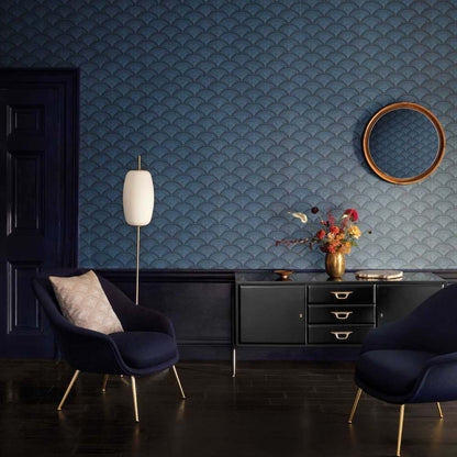 This striking Art Deco inspired feather fan wallpaper by renowned designers Cole & Son features a soft oriental-inspired, geometric fan print in a variety of stylish & chic colourways. Feather Fan is a combination of Asian design meets Art Deco style.