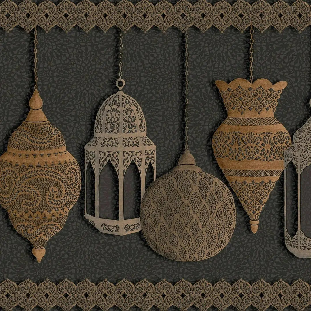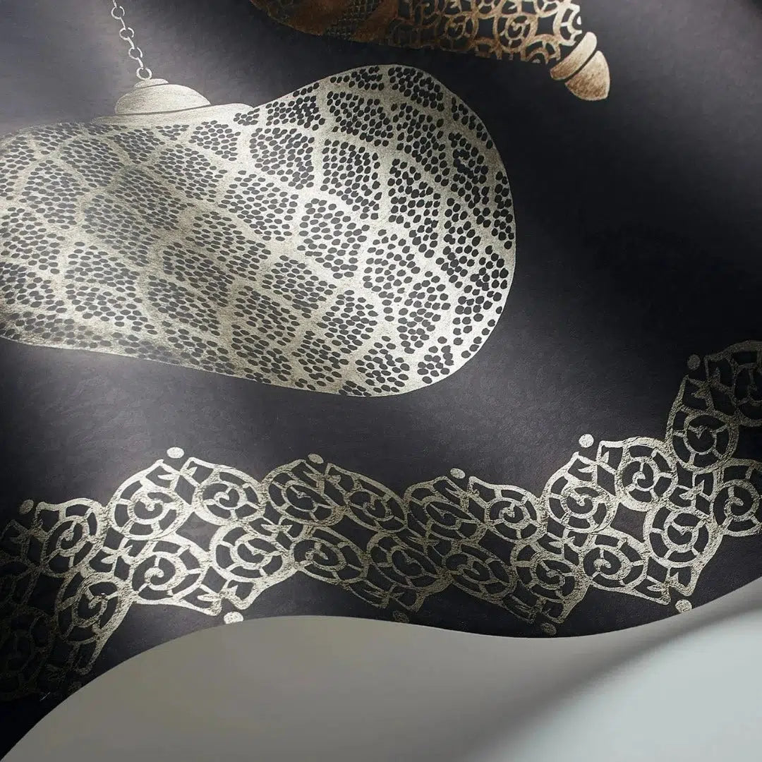 The Fez wallpaper border by Cole & Son is a playful border that is luxurious with metallic elements adding to the lanterns' glow, each of which are hand-painted to create an aged, antique look.