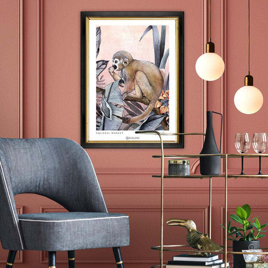 Beautiful details and art bring this fun and creative wall art to life, making it even more enjoyable to admire. Printed on luxurious fine art paper, the print is stamped with Avalana's official logo and signature as a testament to its quality and excellence in craftsmanship. Hang it in your living room, entryway, bedroom - wherever you’d like to add a touch of life and light. Our Squirrel Monkey Art Print is here to make any room come alive with its creative and playful energy.