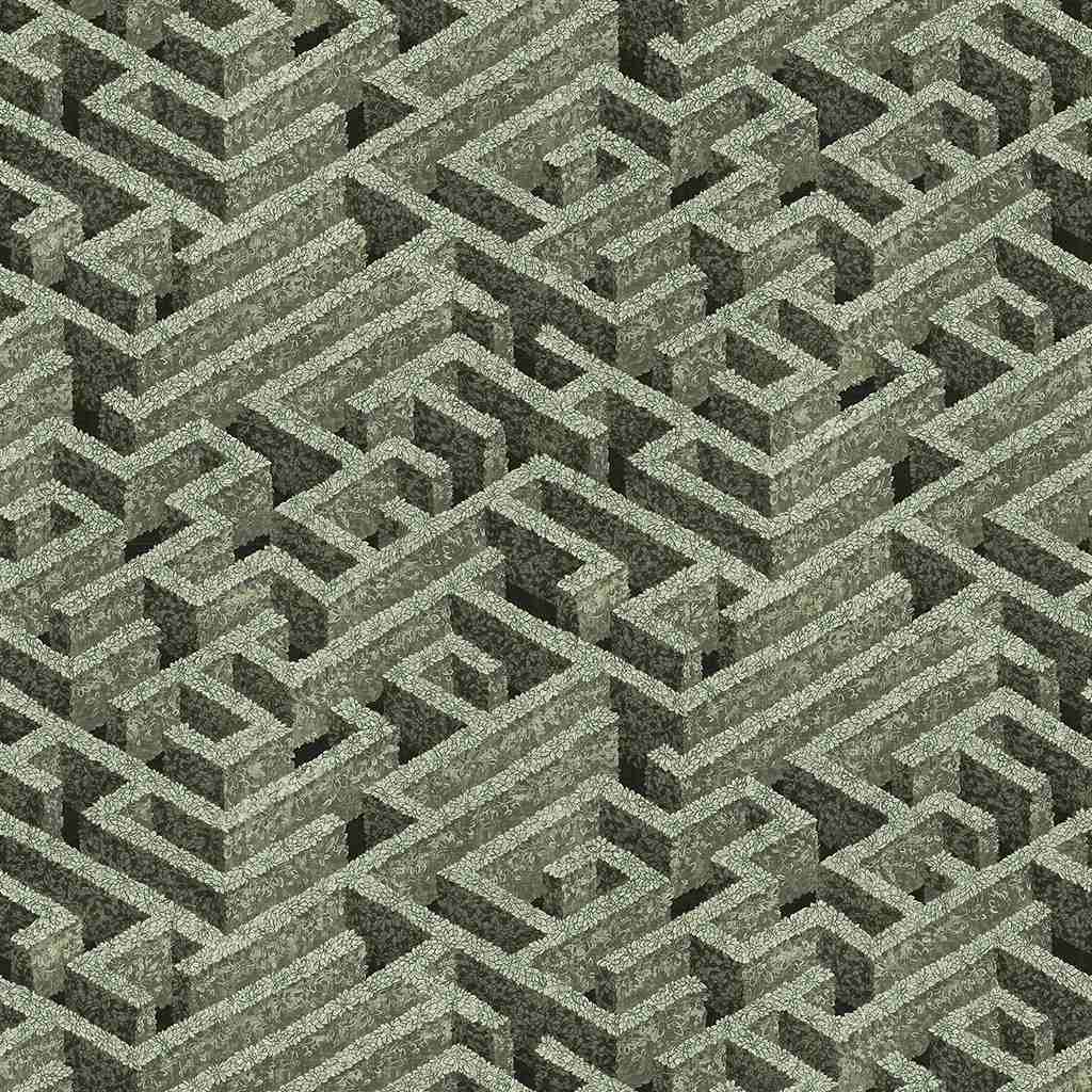 A love for Dutch graphic artist, Escher and mathematical design was the inspiration behind this wallpaper. Technical grids and attention to angles were used to create this continuously rising repeat. Painted with watercolour paints and distressed to create a beautiful texture. Try to find your way out of this intricate labyrinth.
