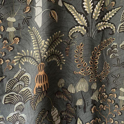 Designed by Josephine Munsey, this stylish fabric was inspired by local woodland. Ferns unfold at your feet and mushrooms spill out of tree stumps creating a carpet of interest. Each detailed element has been meticulously hand painted.
