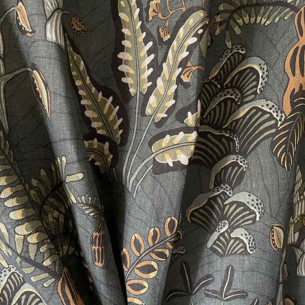 This beautiful Woodland Floor Pure Linen fabric in Petrol & Sage colourway is sure to bring some charming botanical drama to your interior scheme.
