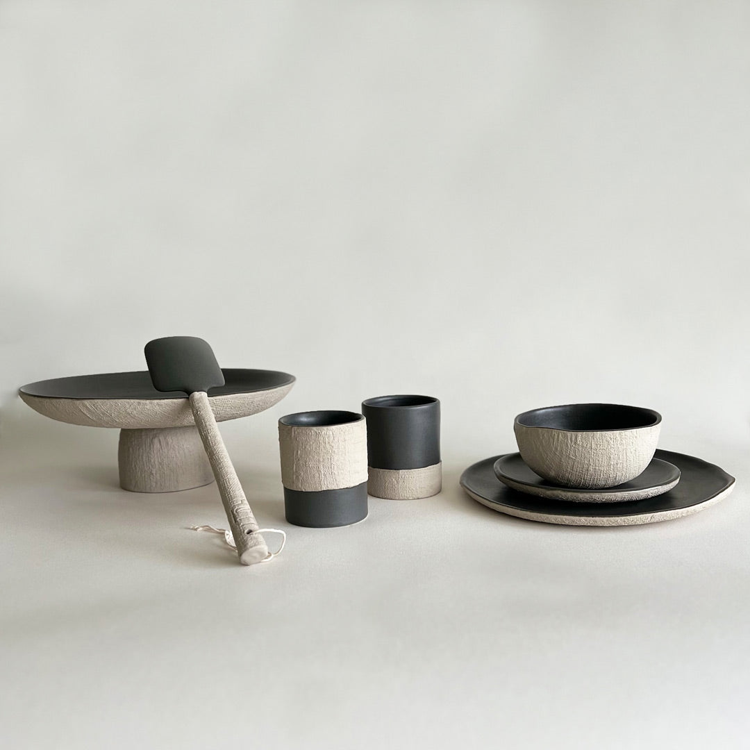 The Yuta Ceramic Serving Tray, in its Charcoal & Beige hues, is the work of exceptional artisans, marrying elegance with simplicity. More than a mere kitchen accessory, it's a contemporary decor piece that adds sophistication to any event.