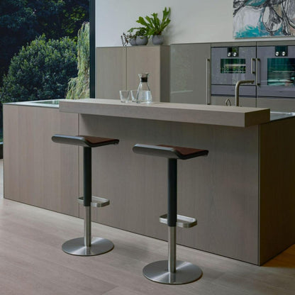 This adjustable stool has a brush stainless steel base and will complement a contemporary home.
