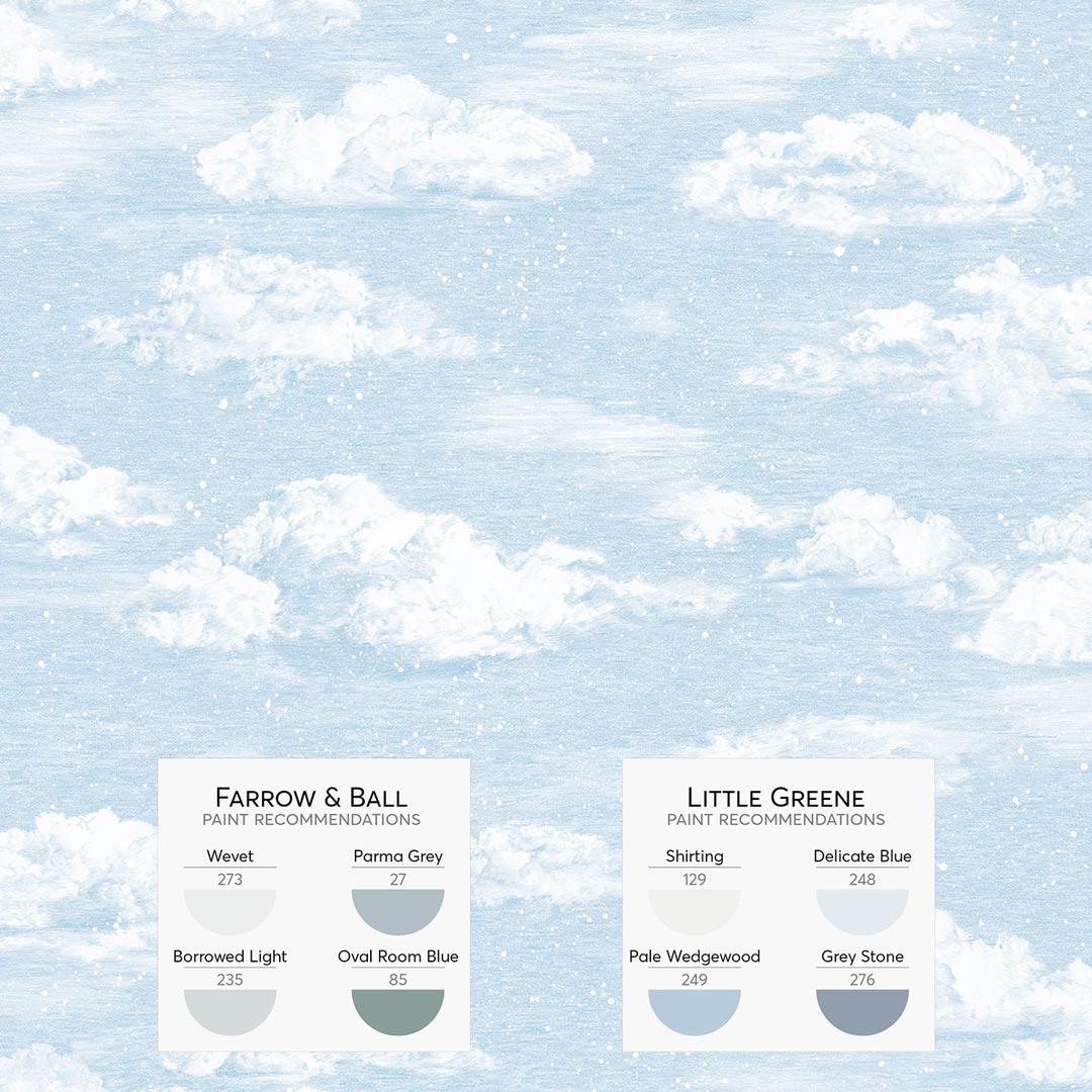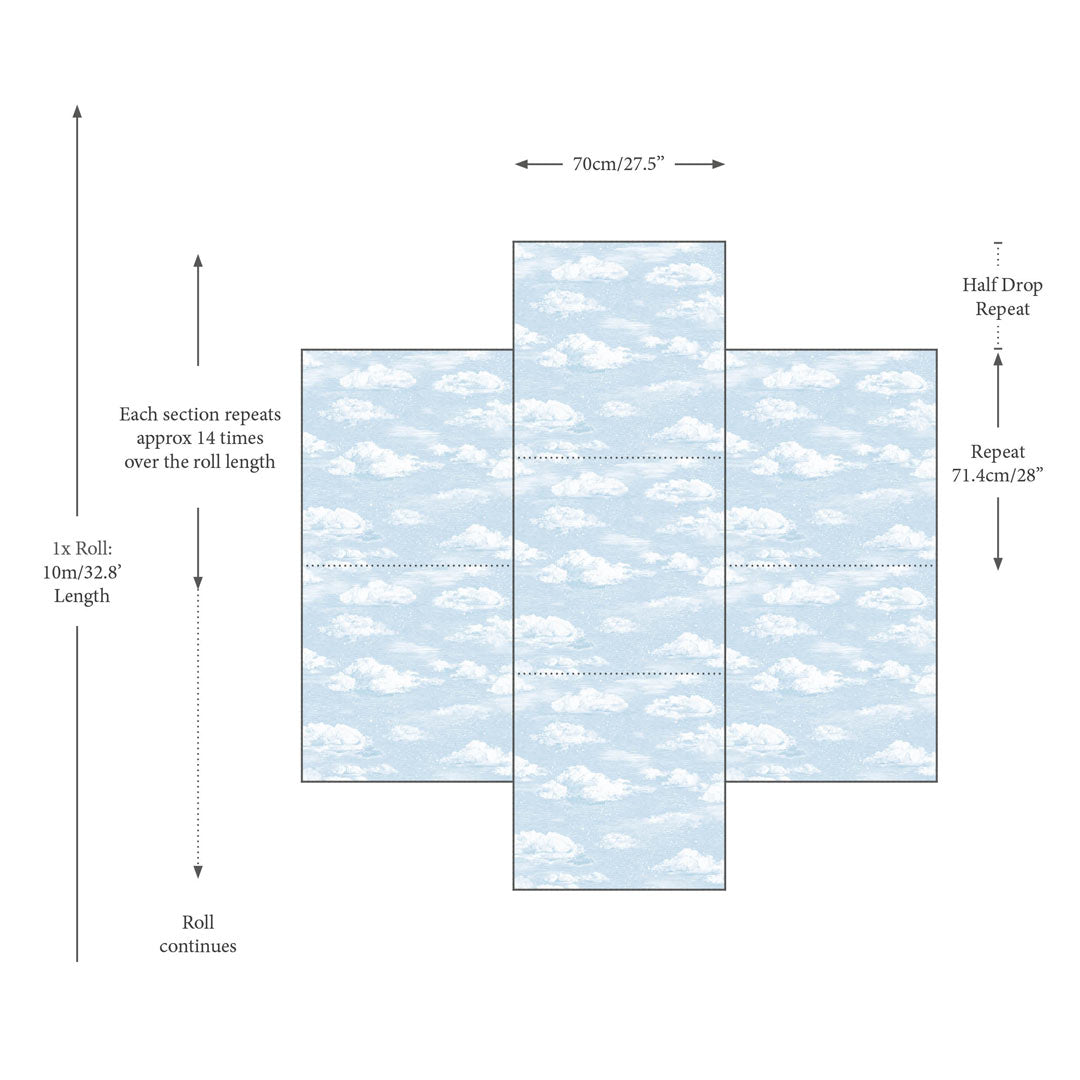 Embellished with gentle swirls of soft white clouds with blue background, this one-of-a-kind wallpaper is inspired by the majestic skies. Expertly crafted, it exudes sophistication and relatability. It also features eco-friendly ink and FSC paper for a low environmental impact.