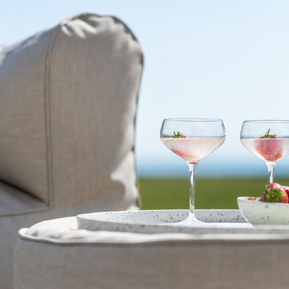 The fabulous Conversation outdoor seating set in beige features two comfy beanbag armchairs, a tiny moon pouffe with terrazzo tray top and a blanket to keep warm. This garden set by by TRIMM Copenhagen is perfect for couples who want to relax in comfort and it's sure to bring the wow factor to your garden, patio, deck or balcony.