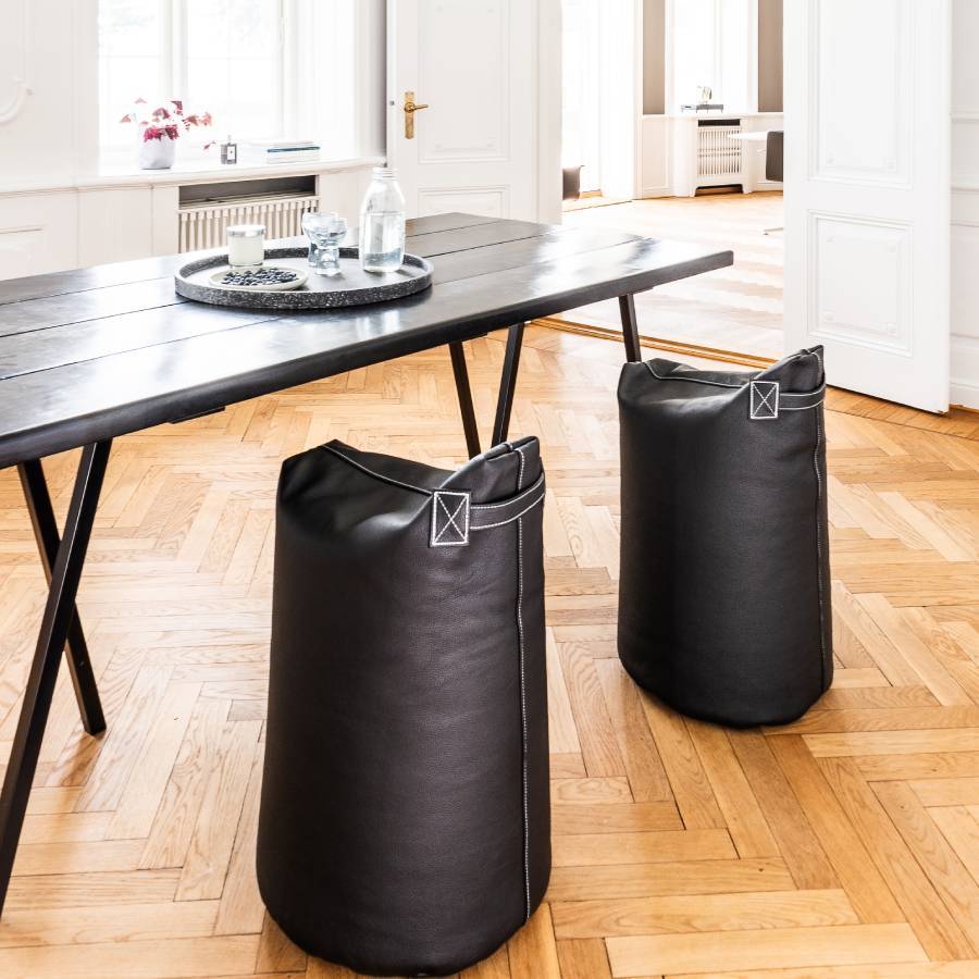 The Satellite Leather Stool is designed by TRIMM Copenhagen. It has a stable and solid form and is filled with EPS bullets making it sturdy and extremely comfortable. The useful handle at the top makes it easy to move around.
