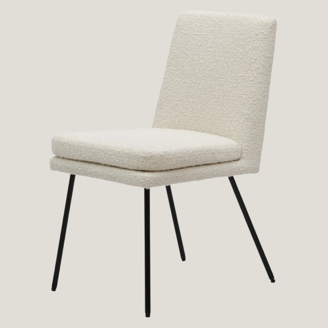 These fabric dining chairs are not just about comfort; they also add a touch of elegance and sophistication to your dining room spaces. The cologne ivory boucle fabric exudes a sense of luxury, while the black metal legs add a modern twist to the traditional dining chair.