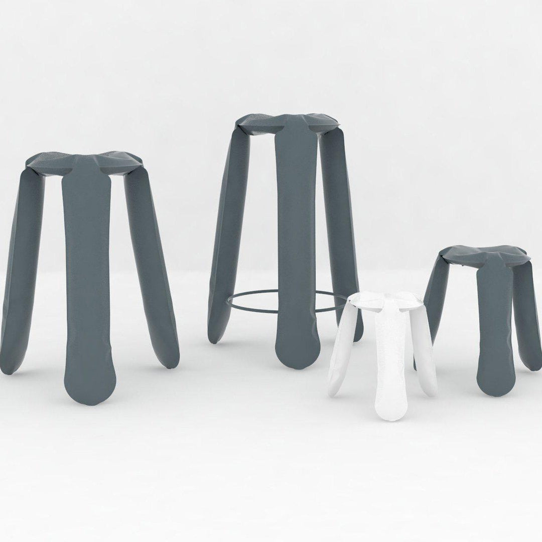 The Plopp stool is powder coated and should be used indoors only. Available in a choice of 9 stylish colourways, including: raw steel, glossy black, graphite, glossy white, moss grey, blue grey, umbra grey, beige grey and polished inox.