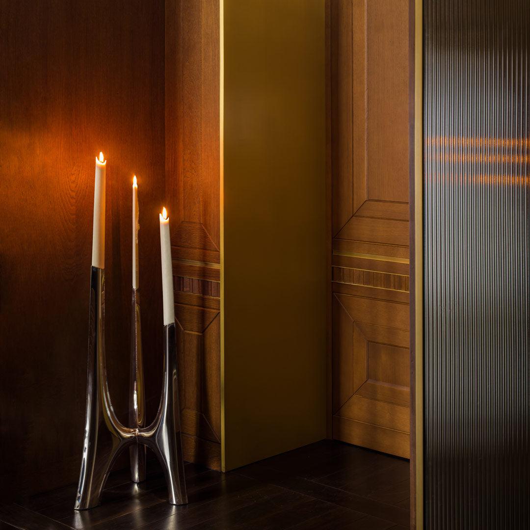 Transform your home's atmosphere with the remarkable Triglav Candleholder in a choice of two sizes, the Triglav 41 size is for placing on a mantelpiece or console table and the Triglav 83 is perfect for freestanding in the corner of a dining room or hallway.