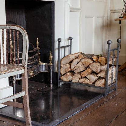 The classic design will stand out pleasurably in any living space, complete with hand-hammered ball finials for subtle decoration - bringing together an understated mix of industrial chic and rustic charm. The cleverly designed shape allows logs to be neatly stacked and stored next to your fireplace, so you'll never have an untidy space again.