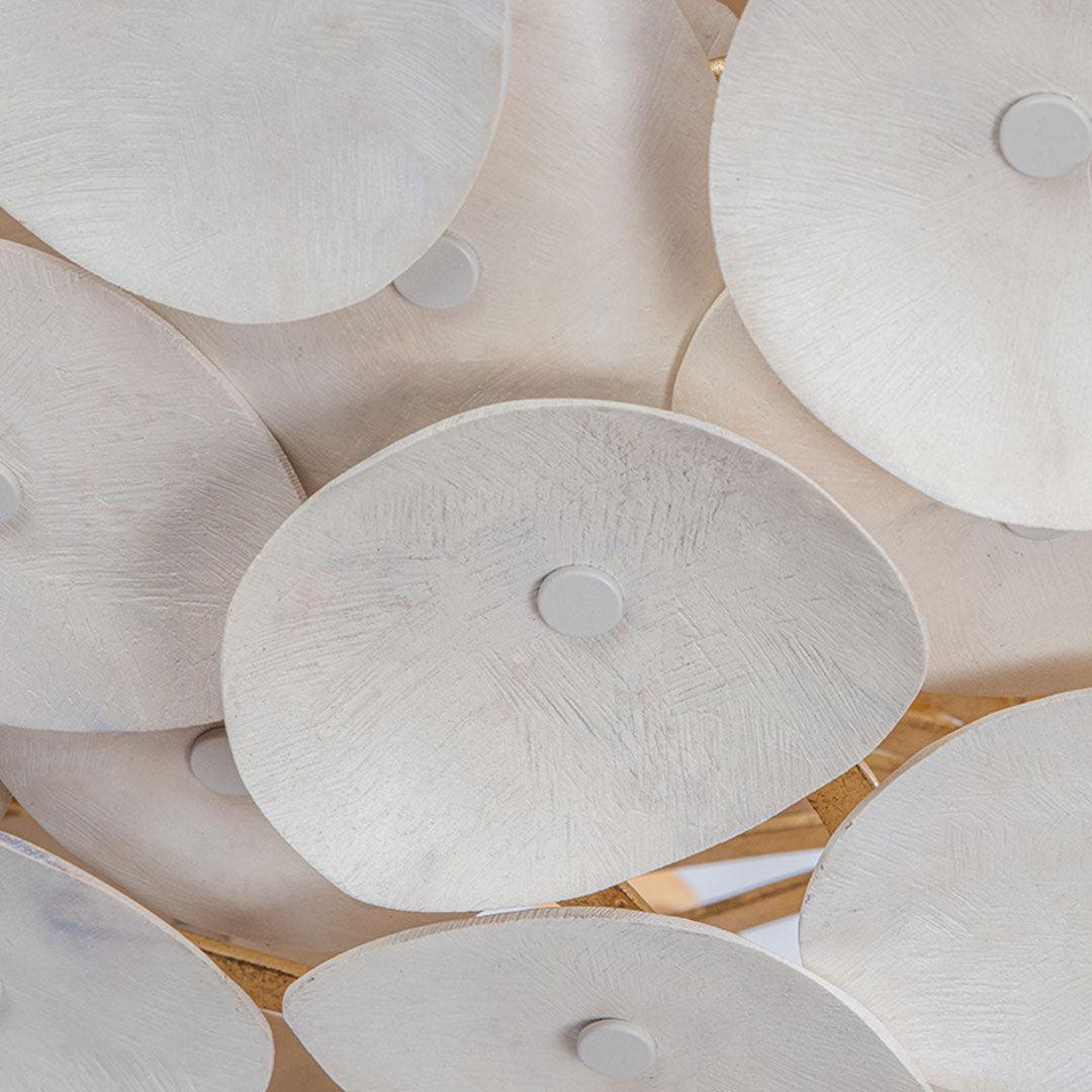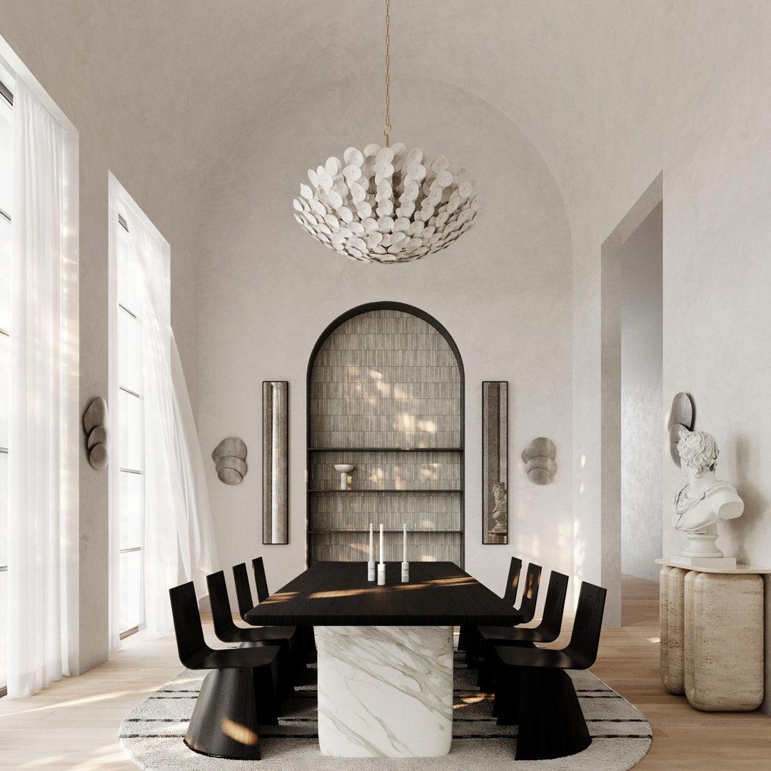 The Aimi Chandelier by Hudson Valley Lighting is the epitome of luxury and elegance. Crafted with delicate discs of white-washed coco shells, this grand chandelier exudes a natural and organic feel, while its Vintage Gold Leaf frame adds a touch of opulence.