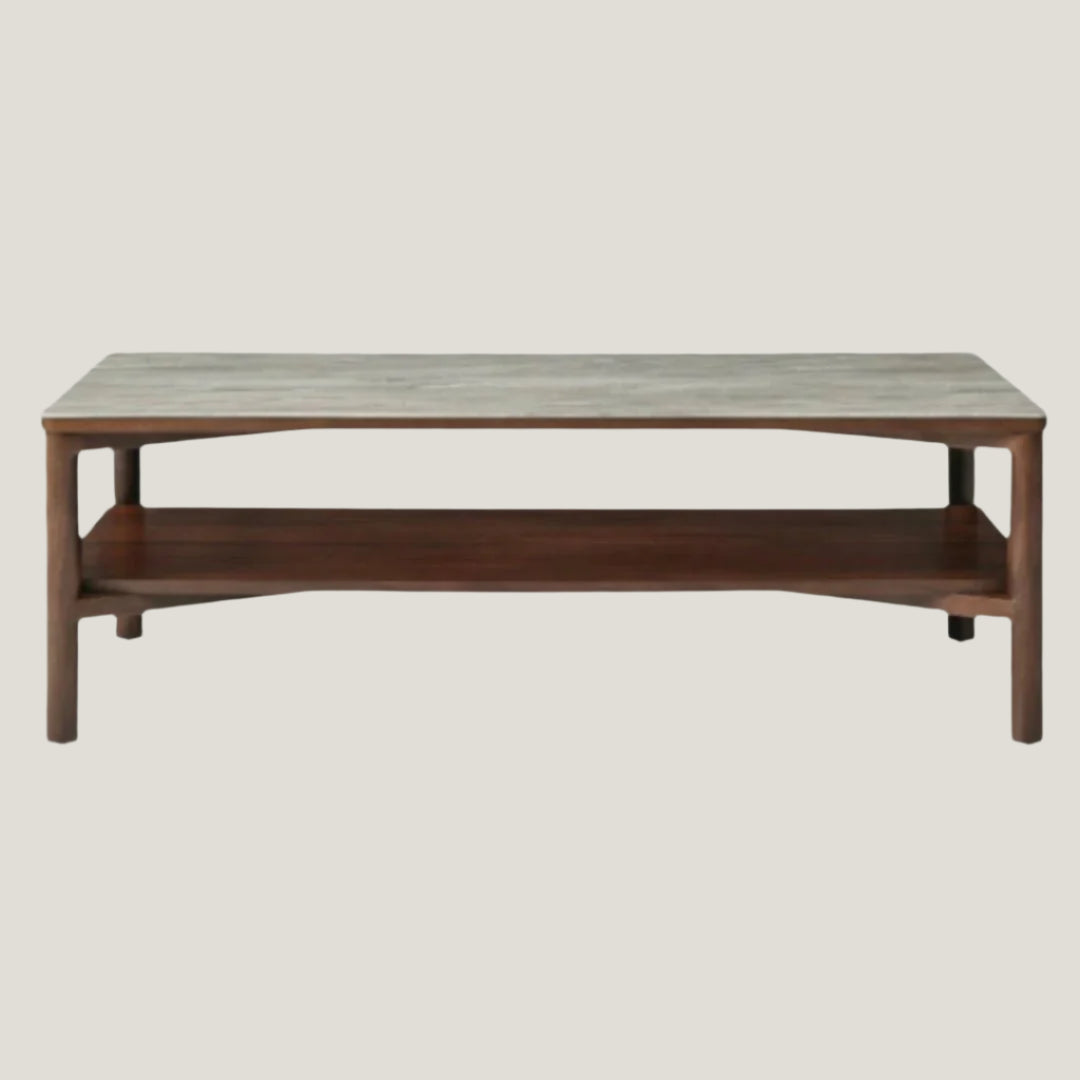 But this coffee table is not just a pretty face – it's highly functional too. The spacious shelf serves as a convenient storage solution, keeping your living room clutter-free and organized. Use it to display your favourite books, magazines, or decorative items, or simply use it as extra storage space for blankets, pillows, and other living room essentials.