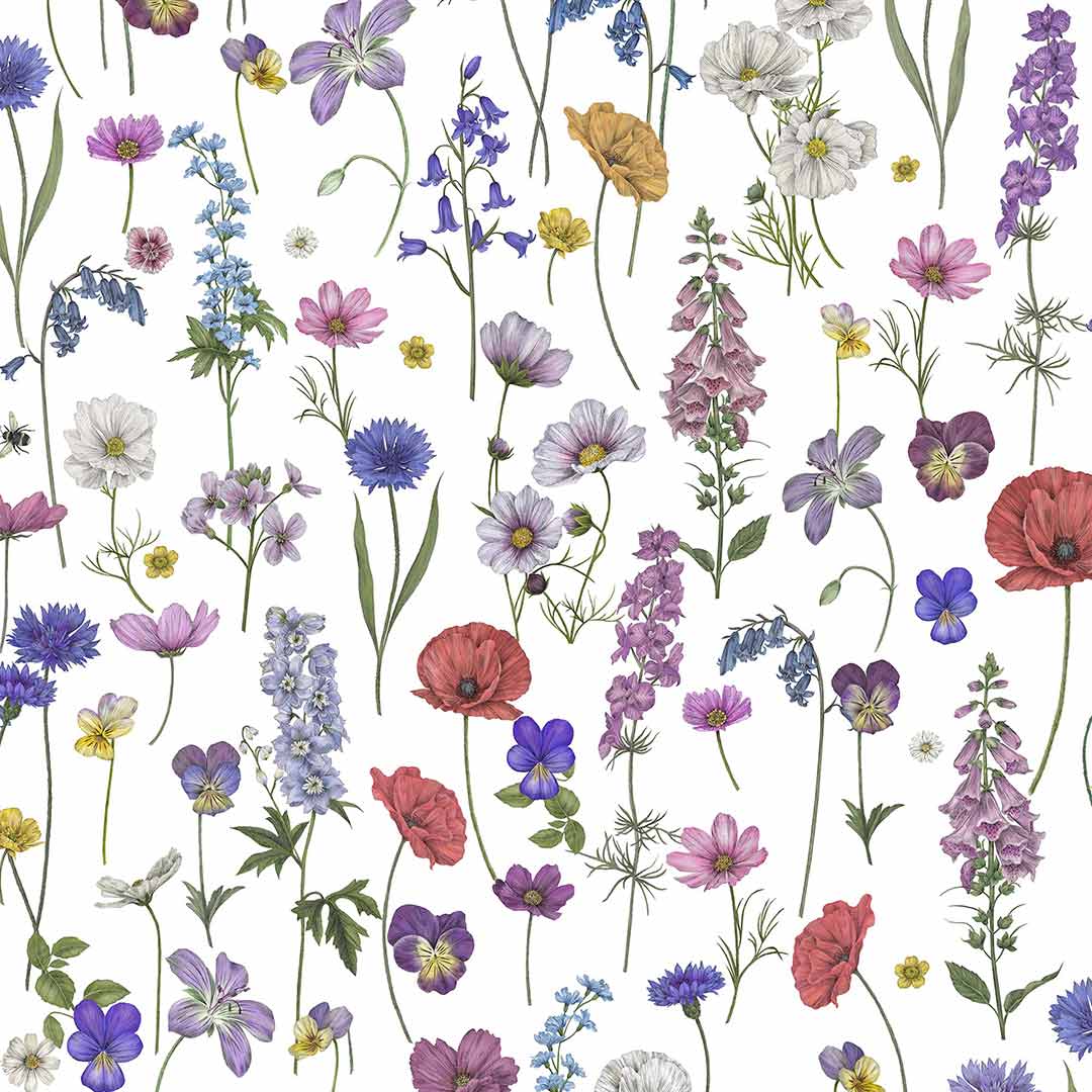 Indulge in the elegance of summer year-round with our 'Botanica' floral mural—a stunning testament to the beauty of hand-crafted design. Featuring an exquisite tapestry of hundreds of delicate, hand-drawn flowers, the Botanica Wallpaper is more than just a decor element; it's a work of art that transforms your living space into a botanical haven.