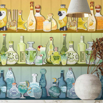 Let's raise a glass to Mixology Wallpaper by Brand McKenzie, a modern wallpaper showcasing a vibrant and exquisite collection of hand-painted bottles and cut glasses. Pull up a chair and elevate your space with the artistry and flavour of the rainbow spirits and cocktails on display. Will your drink of choice be Richard’s Brandtini Splash or would you prefer a sip of McKenzie Moonlight Magic?