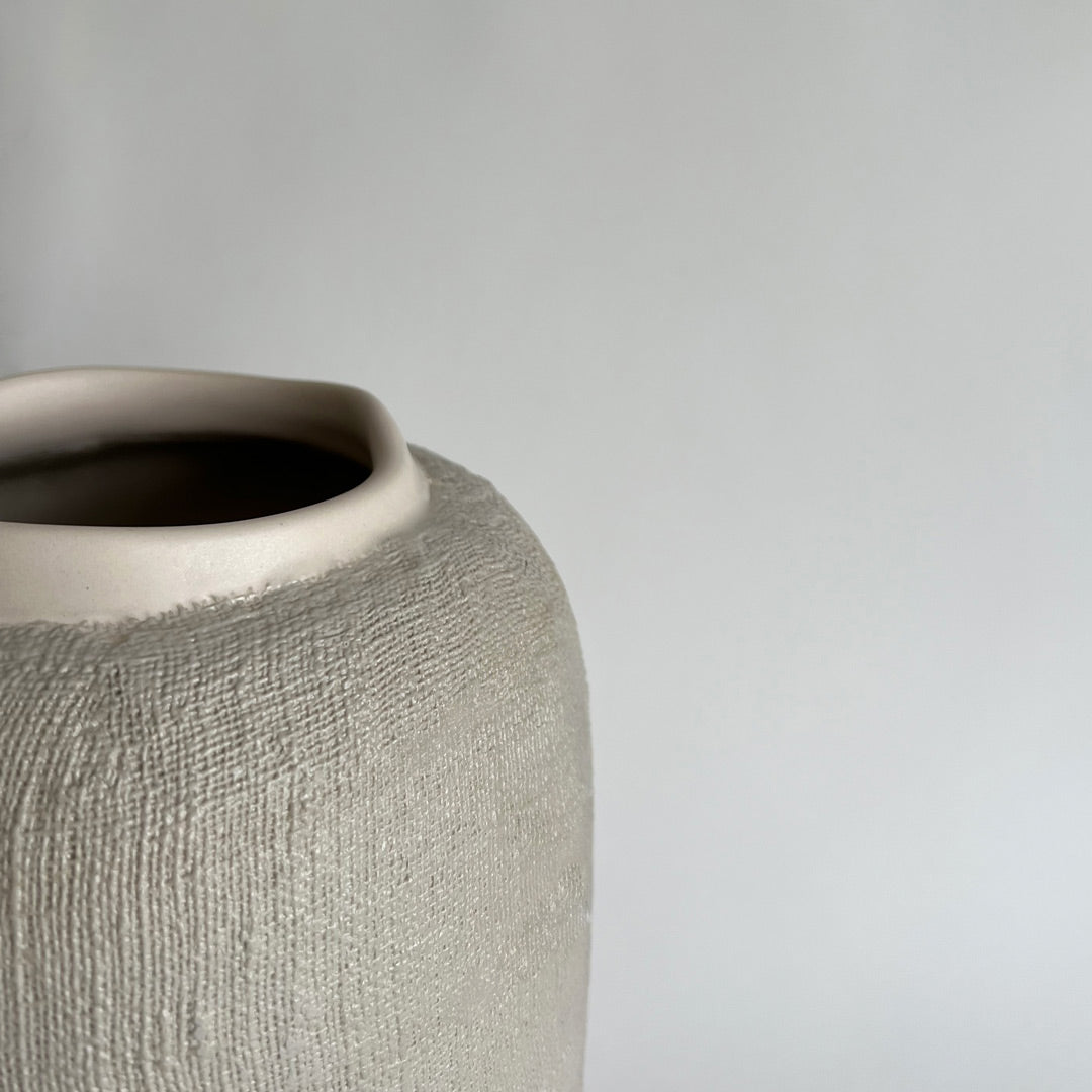 Elevate your home decor with the exquisite Yuta Large Ceramic Vase in Beige. Handmade by exceptional artisans, this statement vase is a symbol of timeless elegance and simplicity. Inspired by the natural beauty of jute fibres, the Yuta Vase effortlessly blends traditional pottery techniques with modern design.