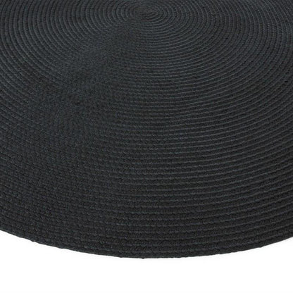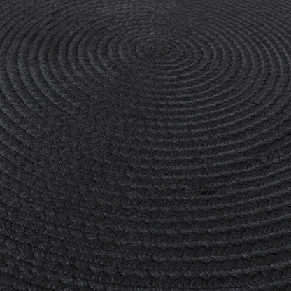 Beautifully simple, this contemporary round, charcoal grey rug is handwoven in India from 100% polyester yarns making it highly durable and weatherproof.