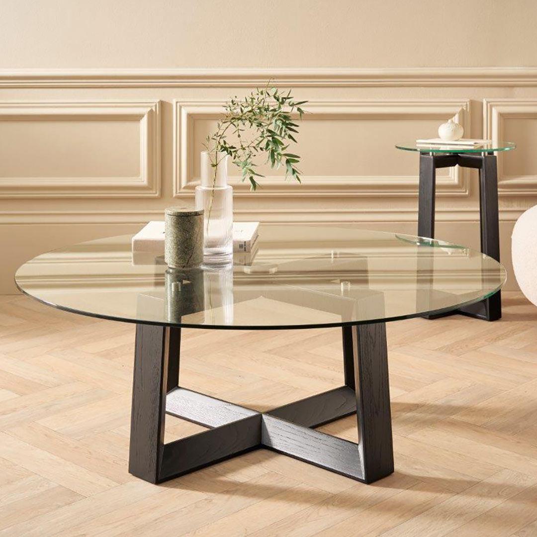 Crafted with the highest quality materials, this coffee table is built to withstand the test of time. The angular frame provides a sturdy and stable base, while the flower cut veneer adds a touch of elegance and sophistication. And let's not forget the practicality of a round table - perfect for keeping all your essentials within easy reach, without compromising on style.