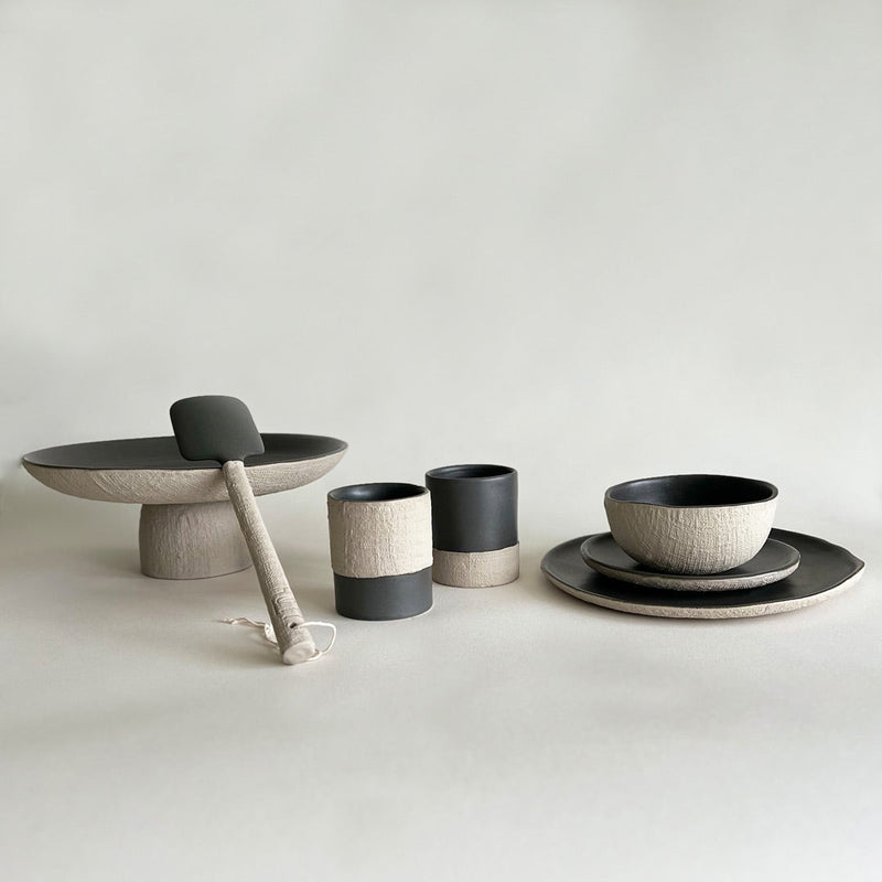 YUTA Ceramic Dinnerware Set - Beige and Charcoal - Koti London