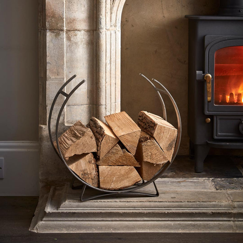 Round Pewter Firewood Holder