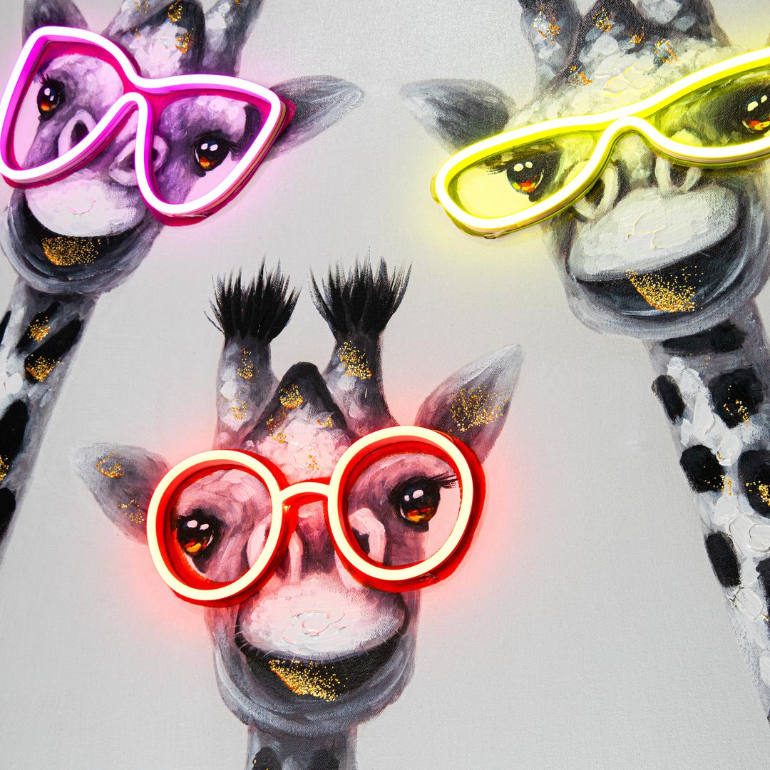 Introducing the latest must-have piece for your home decor: the Giraffe- LED Neon Artwork. This stunning wall art is 100% hand painted with intricate details and vibrant colours that are guaranteed to catch your eye. But what sets this artwork apart from the rest is the addition of pink, yellow, and orange LED neon lights, strategically placed to add that perfect touch of neon and bring the ultimate WOW factor to any space.