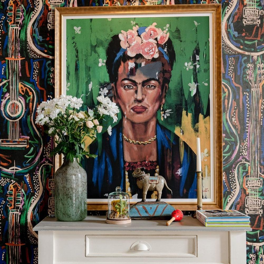 Step into a world of colour and vibrancy with this stunning portrait of the famous artist Frida Kahlo. Created by self-taught artist Amirou Diallo for Mind The Gap, this wall art brings a contemporary expressionist approach to one of the most iconic figures in art history.