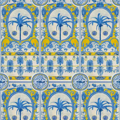 The Villa Mural Yellow Wallpaper by Romanian designer MINDTHEGAP is perfect for recreating a sunny holiday vibe at home.
