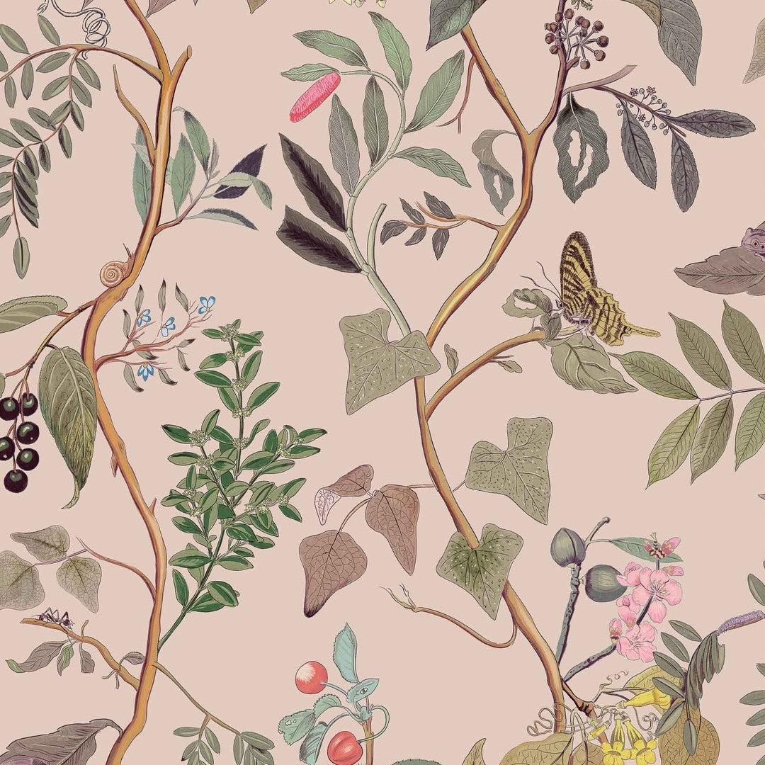 The Diderot Wallpaper by Coordonné is a stunning homage to botanical art, blending natural beauty with timeless elegance. Drawing inspiration from vintage naturalist illustrations, it features a detailed arrangement of intertwining vines, flourishing flowers, and delicately rendered fauna, including butterflies, snails, and caterpillars. Every element is meticulously illustrated, creating a harmonious and captivating design that brings the outdoors inside, enriching any interior space with its organic charm.