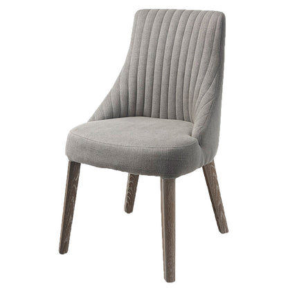 The Halwell Chair by RV Astley is a masterclass in understated elegance and modern refinement. Wrapped in a soft grey linen-blend fabric, its slim, armless silhouette offers a sleek yet inviting presence.