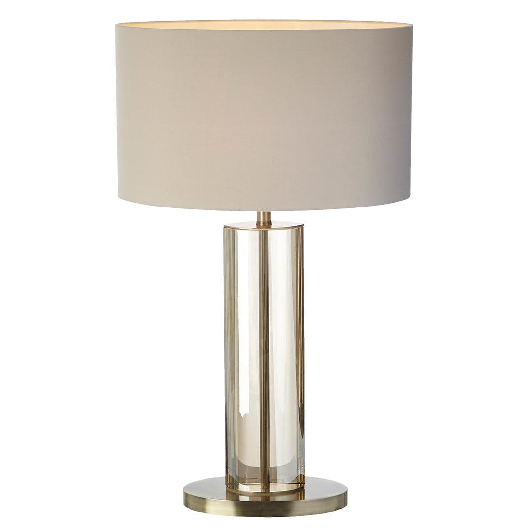 Lisle Table Lamp by RV Astley is a stylish contemporary side light, mixing trendy antique brass with sleek crystal to create a stunning designer table lamp. This small but beautifully contoured lamp comes complete with a gorgeously neutral opal shade with gold lining, allowing it to fit into many interior design settings whilst giving a clear and pristine finish.