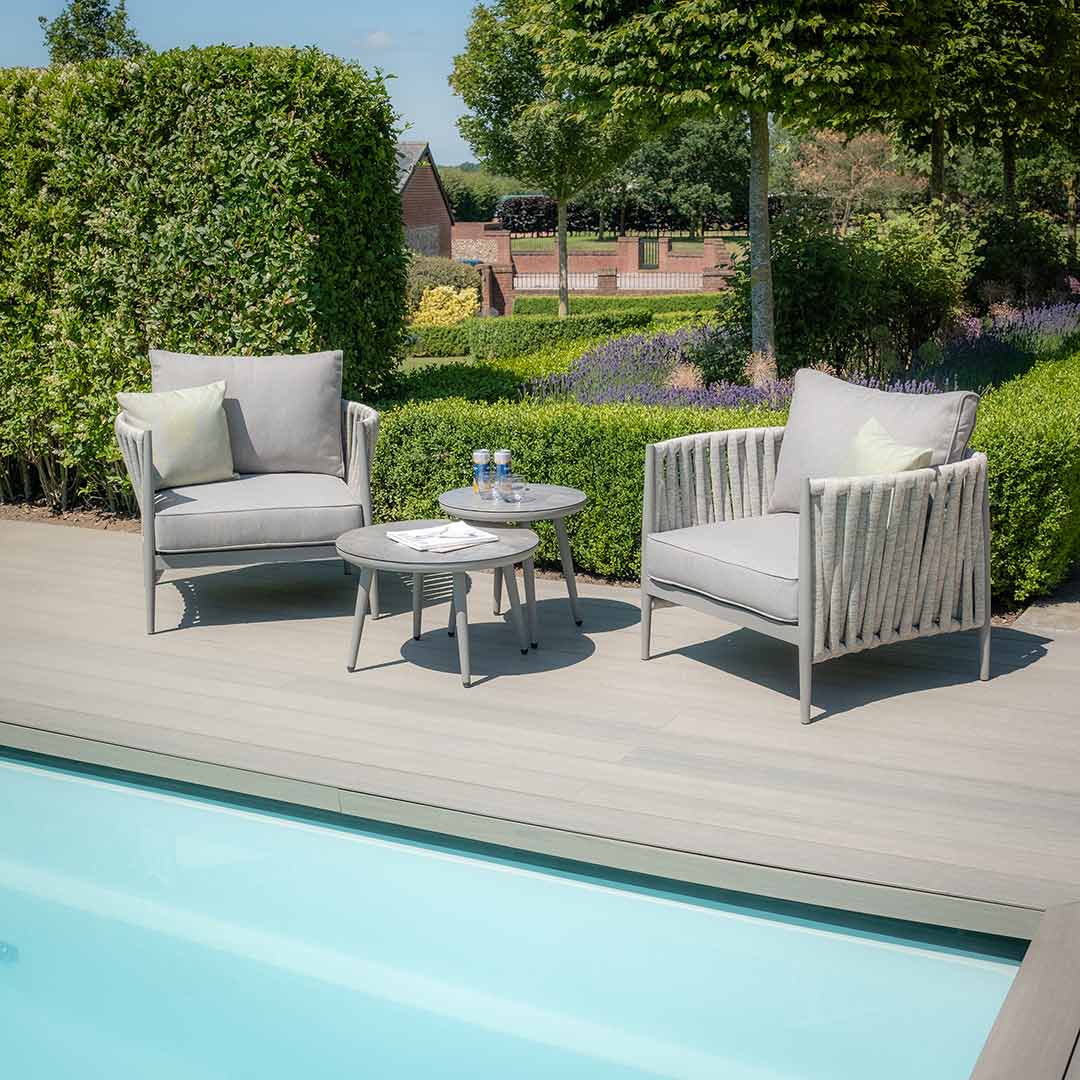 Elevate your outdoor space with the Milan Rope Weave Lounge Set. Handcrafted from premium outdoor rope fabric, this set exudes luxury and sophistication. With the Maze Milan set, you can experience the perfect blend of comfort and style.