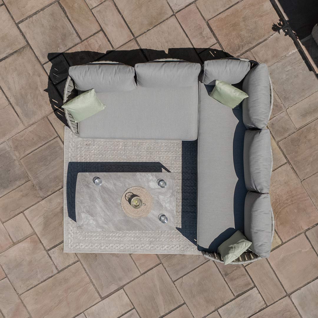 Introducing the Milan Small Corner Sofa Set - Cool Linen, the perfect addition to elevate your outdoor living space. Designed with both style and comfort in mind, this handcrafted set is made with premium outdoor rope fabric that exudes luxury and sophistication.