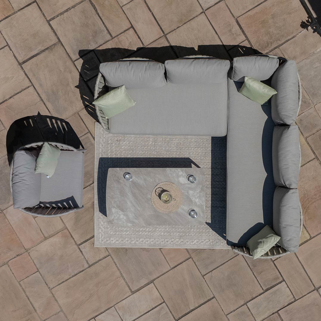 Take your patio, balcony, or garden to the next level with this chic L-Shaped corner sofa and sleek rectangular coffee table. The Maze Milan collection's signature sweeping curved frames and tapered legs add a touch of elegance and refinement to any outdoor setting. Crafted with durability in mind, this set is built to withstand the elements and provide year-round enjoyment for you and your loved ones.